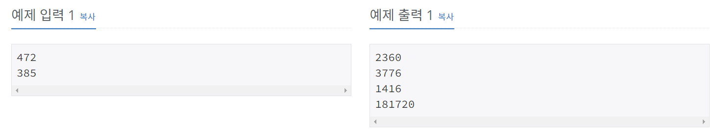곱셈의 각 3,4,5,6 자리에 들어갈 값을 출력해야 합니다.