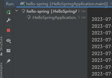 HelloSpringApplication이 실행되었다는 걸 확인할 수 있다.