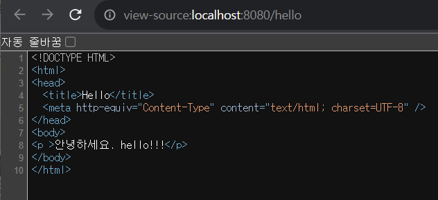 타임리프 코드는 이미 처리되어 사라졌고, html코드만 보이고 있다.
