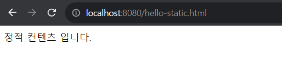 localhost:8080/hello-static.html 경로로 접속하면, 방금 작성한 페이지가 그대로 출력된다.