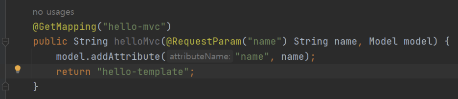 또한 View에, 입력받은 "name"값을 전달하기 위해 model.addAttribute도 입력해준다.