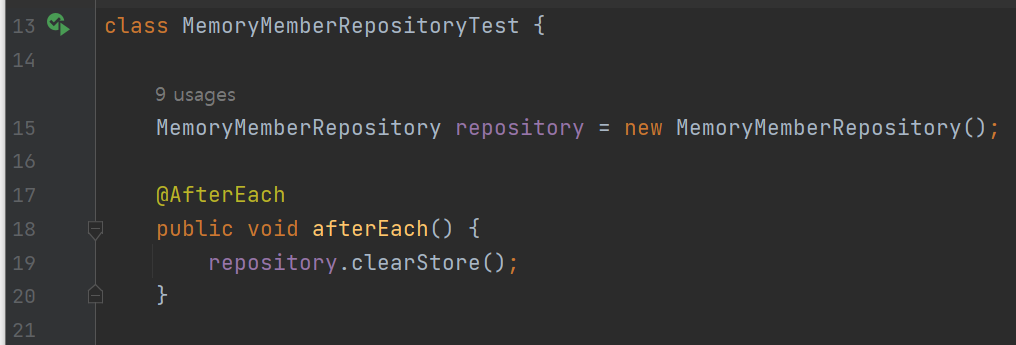MemoryMemberRepositoryTest에서 사용했던 afterEach() 메소드를 가져오자.