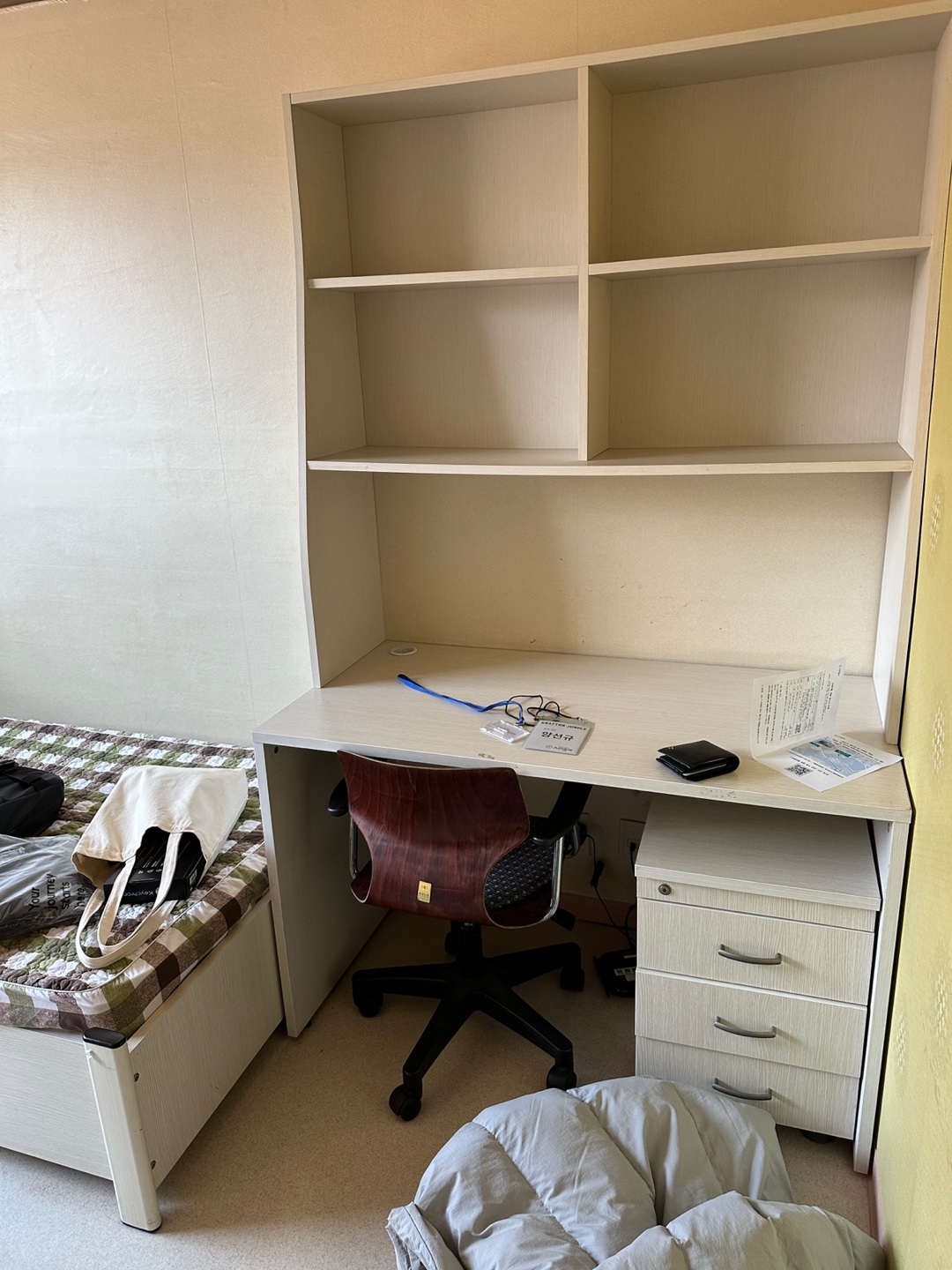 팀원들과 아침 8시 30분에 모이자는 약속을 하고 기숙사로 돌아가 잠을 자려고 누웠는데, 불편해서 그런지 잠이 아예 안 왔다. 매트리스가 가운데만 푹 들어가서 균형이 안 맞는.. 그런 느낌이었다. 하지만 침대는 부수적인 이유고 아무래도 심적인 게 가장 크지 않았나 싶다. 뭔가 막막한 느낌도 들고 집에 가고 싶고... 군대 훈련소 첫날과 굉장히 비슷한 느낌이 들었다.