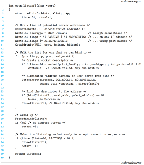 - "서버"는 open_listenfd 함수를 호출해 서버와 연결한다