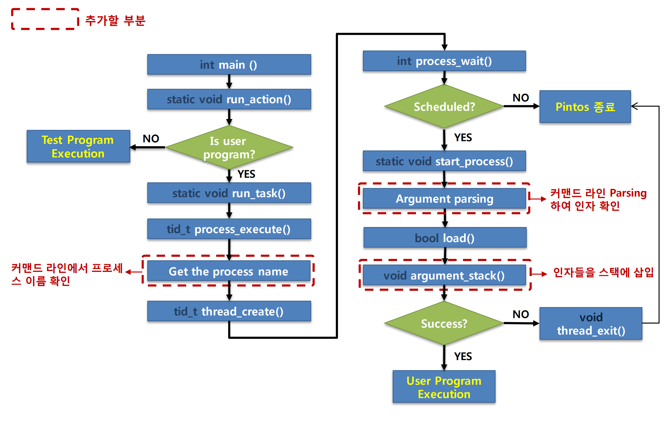 아래는 PintOS에서 프로그램이 실행되는 순서이다.