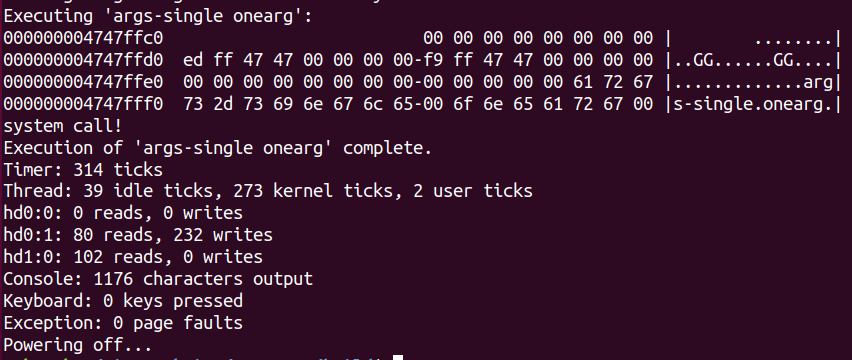 pintos --fs-disk=10 -p tests/userprog/args-single:args-single -- -q -f run 'args-single onearg'