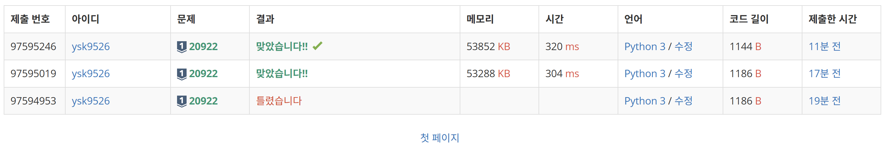 푸는데 1시간 조금 넘게 걸렸다. 이젠 문제를 보고 자연스럽게 알고리즘이 떠오를 수준은 되었지만, 여전히 구현력이 부족하다. 머리속에 맴도는 해결방법을 실제 코드로 옮기는 게 아직 좀 느리다. 열심히 반복훈련 하는 수 밖에 없을 것 같다.