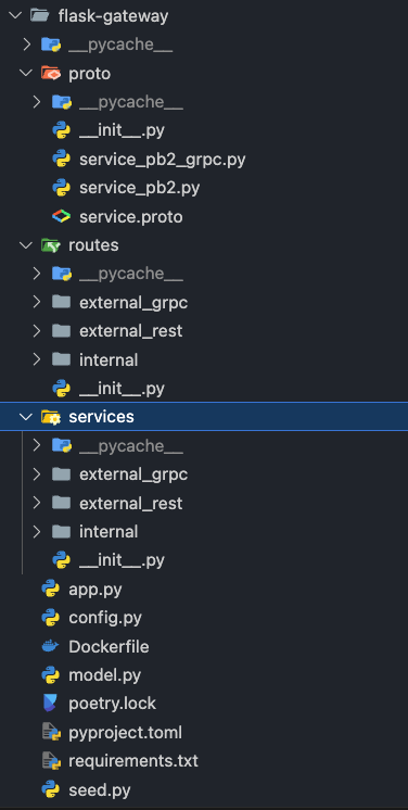 Flask 측(gRPC 클라이언트) 에서는 이렇게 라우터 + 서비스를 구성하면 된다.
