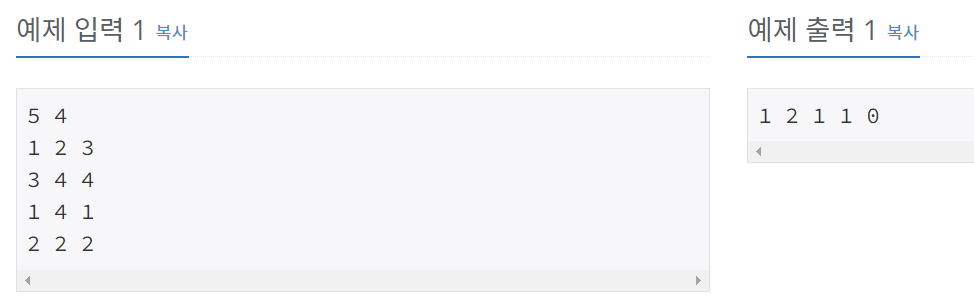 결국 각 바구니에 마지막으로 남아있는 공이 몇번 공인지 출력해야 합니다.
