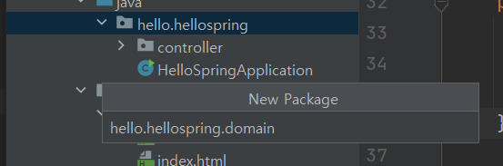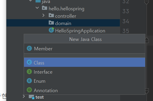 우선, 도메인을 구현할 패키지인 hello.hellospring.domain 패키지를 만들자.