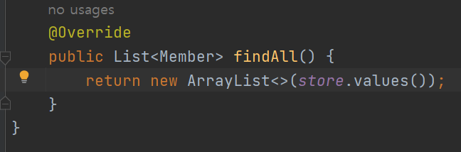 반환형이 List이므로, 배열 객체를 생성하여 반환해준다.