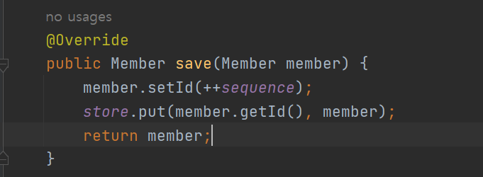 먼저 Member객체를 매개변수로 받으며, sequence값을 Member객체의 id로 셋팅한다.