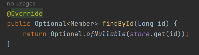 먼저 id를 매개변수로 입력받고, store에서 id에 해당하는 객체(회원, Member객체)를 반환한다.