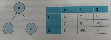 - 0과 1간의 이동은 비용7, 0와 2간의 이동은 비용5가 든다.