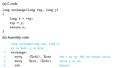 -> 메모리 주소를 레지스터 %rax(변수x)에 담아, 레지스터를 메모리 주소로써 이용한 것.