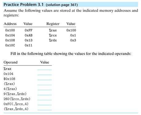 4(%rax) : 0xAB ( %rax에 담긴 0x100값에, 앞의 상수 4를 더한 주소의 메모리 값 )