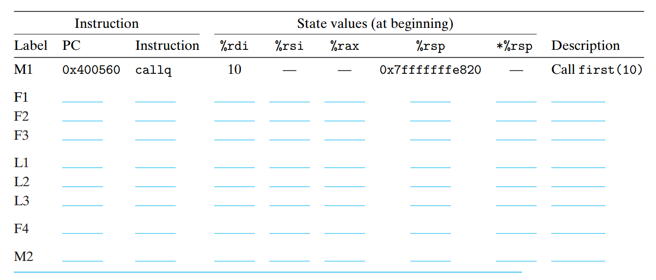각 레이블의 인스트럭션은 아직 실행되지 않았다는 가정 하에 레지스터와 주소값 등을 작성해야 한다.