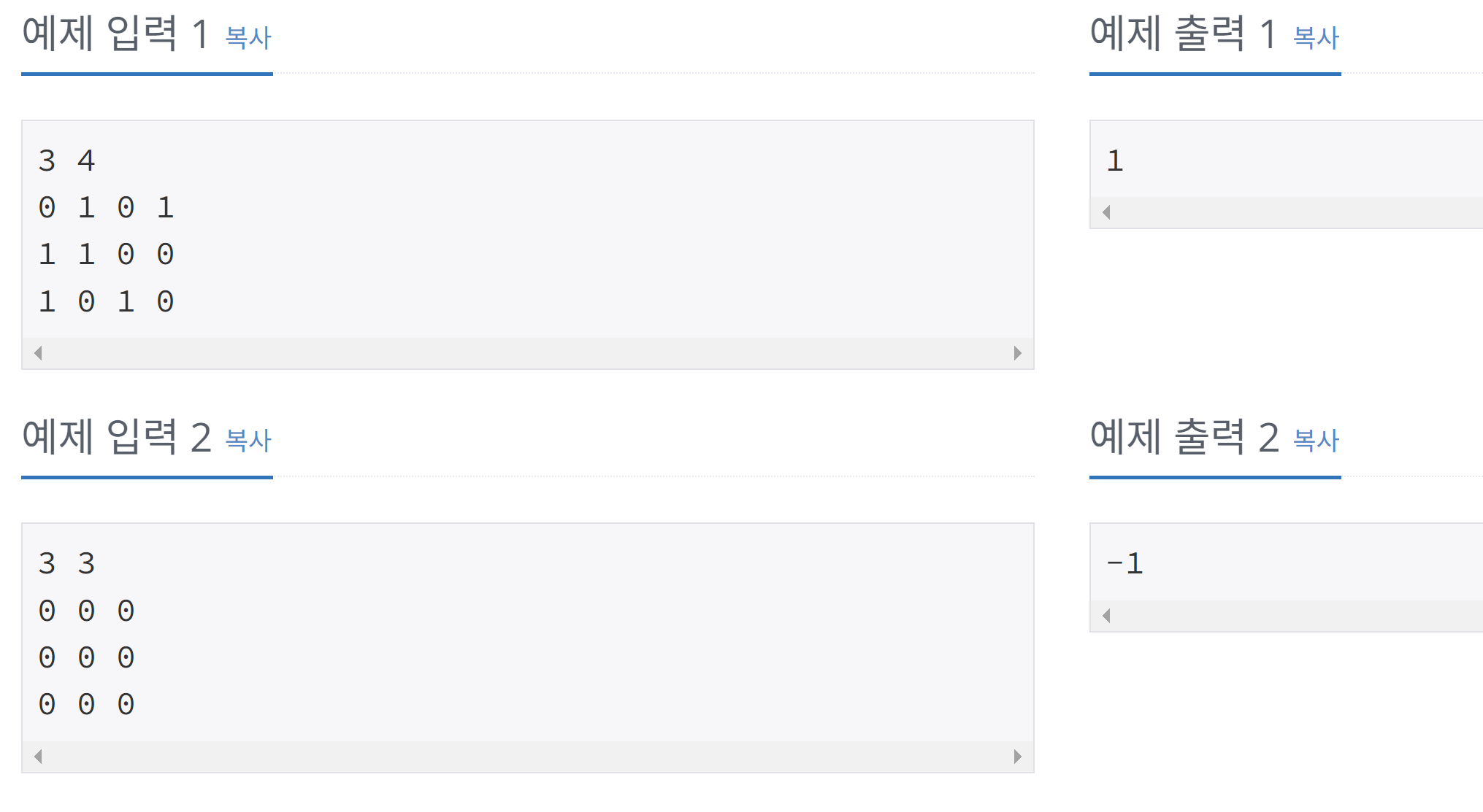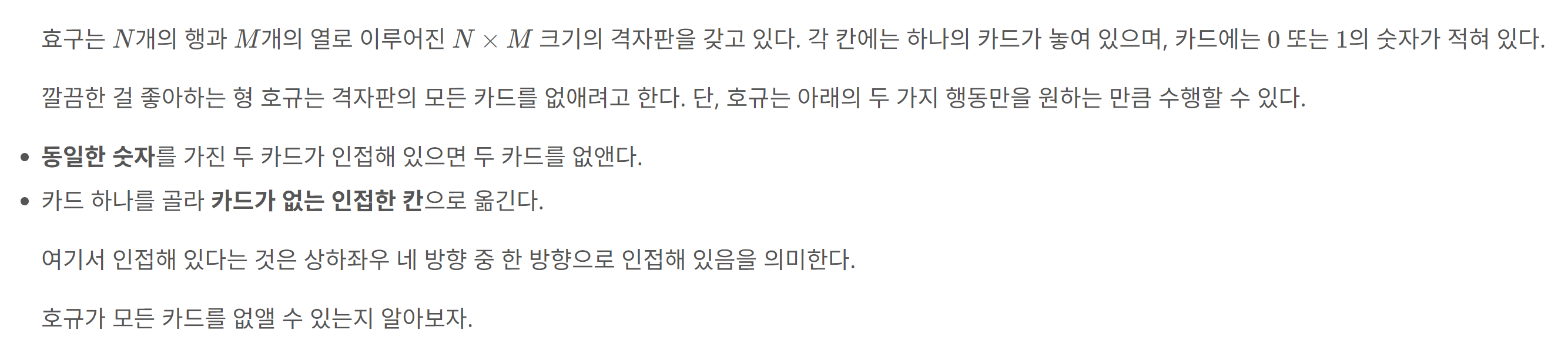 배열은 N*M 크기이며 0 또는 1 카드로 가득 차 있다.