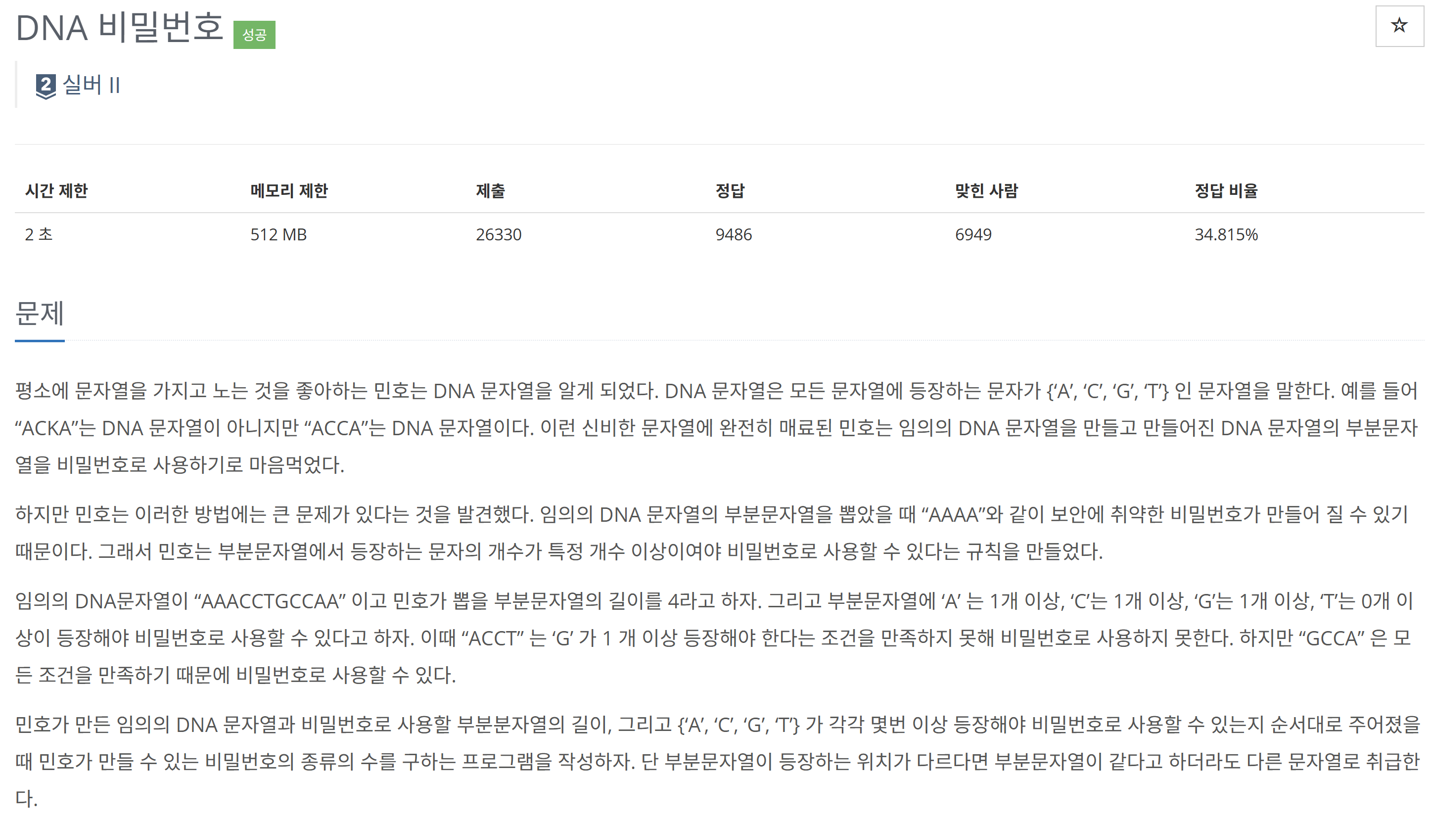 참고로 DNA 문자열 입력 받을 때, strip()이나 rstrip()을 붙여줘야 한다. 붙이지 않으면 \n 개행문자가 추가되고 오답 처리를 받는다.