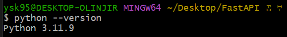 일단 내가 파이썬 어떤 버전을 쓰는지 확인해 보았다. 현재 3.11.9를 쓰고 있다.