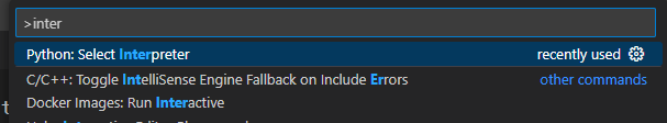 Ctrl + Shift + P를 누르고 interpreter를 검색하면 select interpreter가 뜬다. 이걸 선택.