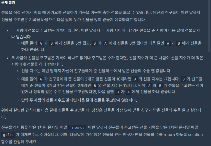 [프로그래머스 / python / Level 1] 가장 많이 받은 선물