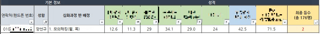 내 성적표다. 나는 176명중에 최종등수 2등을 받았다!!!